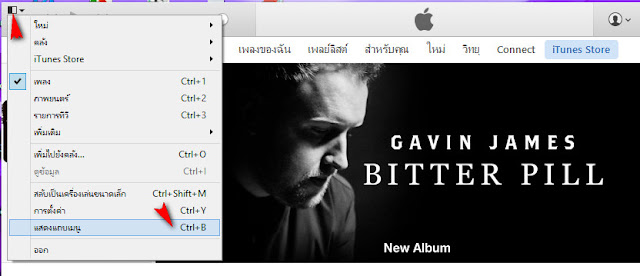- ในที่นี้ผู้เขียนต้องการให้แสดงเมนูต่างๆ เป็นภาษาอังกฤษ (เดิมเป็นภาษาไทยหลังติดตั้ง) หรือบางท่านอาจทำสลับกันก็ได้ ... แต่การแสดงภาษายังไม่เปลี่ยนทันที ต้องปิดโปรแกรม iTunes ออกไปก่อน 1 ครั้ง แล้วกลับเข้ามาใหม่ ก็จะได้ภาษาดังที่ต้องการ